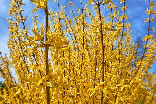 Forsycja pośrednia 'Maja’ – Piękne żółte kwiaty